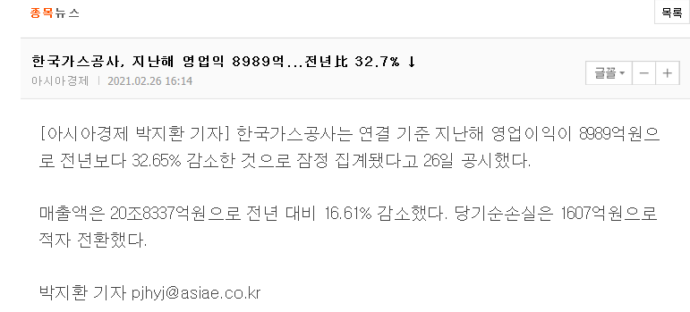 최근, 한국가스공사의 2020년 실적이 발표되었습니다.