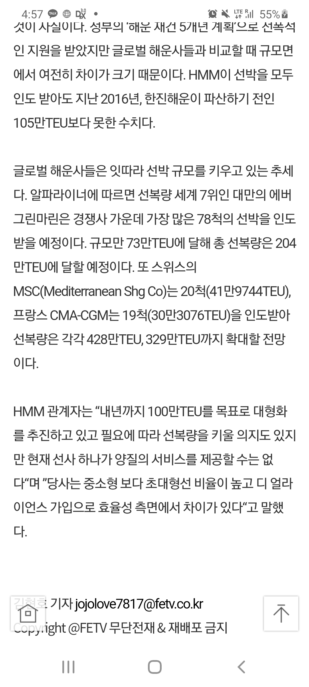 이미 IMO2020에 의해 세계 최대 해운선사들의 친환경 선박 발주는 크게 늘어나, 대만의 에버그린은 78척의 선박이, MSC는 20척, CMA-CGM은 19척으로. HMM의 12척보다 현저히 많다는점. 특히 해운업은 선복량의 증가를 통한 규모의 경제가 대단히 중요합니다.