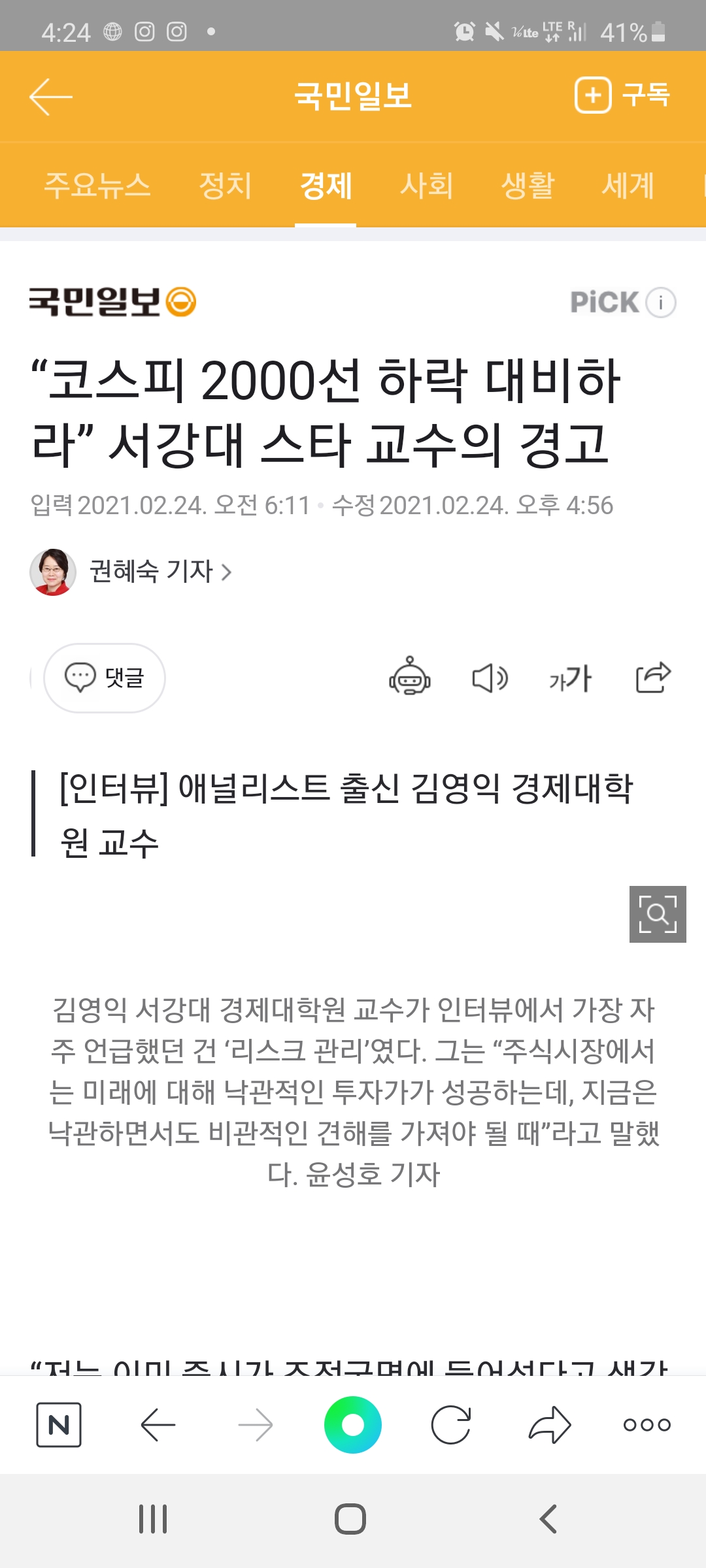 어찌됬든 김영익 교수님의 인터뷰는 슬슬 방심하기 시작하던 저조차도 딱 정신이 깨도록 만들어주었습니다.