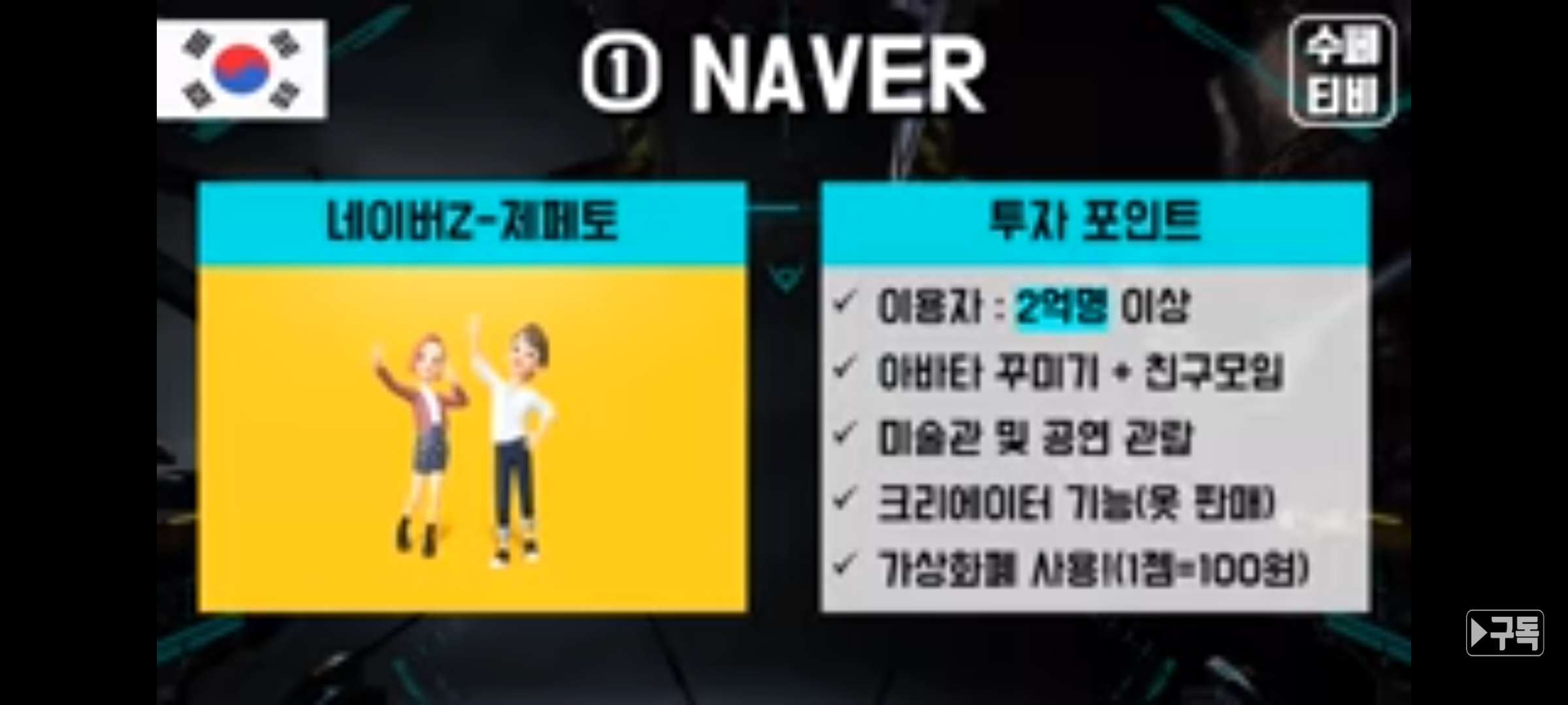 수페TV에서 보다 자세하게 메타버스 대장주 관련 설명을 해주고 있음으로 혹시 관심이 있으시다면 찾아보시기를 추천드립니다.