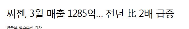 씨젠은 주가가 많이 하락한 뒤로 월마다 매출 통계를 발표하고 있는데요. 3월 매출이 1285억원이 에상되며, 이는 전년 동기 대비 2배가 급증한 수치라고 합니다. 올 1분기 중 최고 실적이라고 하는데요. 확진자가 꾸준하게 발생하면서 계속적으로 씨젠의 진단키트가 잘팔리는 것 같네요.