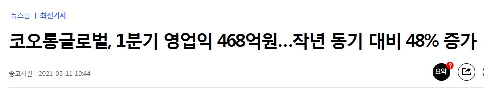 최근 코오롱글로벌은 1분기 잠정 실적을 발표했는데요. 영업이익이 작년 동기 대비 47.9% 증가한 468억원 이었습니다.