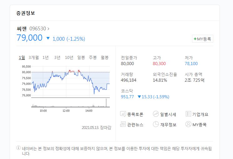 현재는 100% 무상증자를 해서 79000원의 가격이 되어 있습니다. 이전 가격으로는 약 16만원 대인데요.