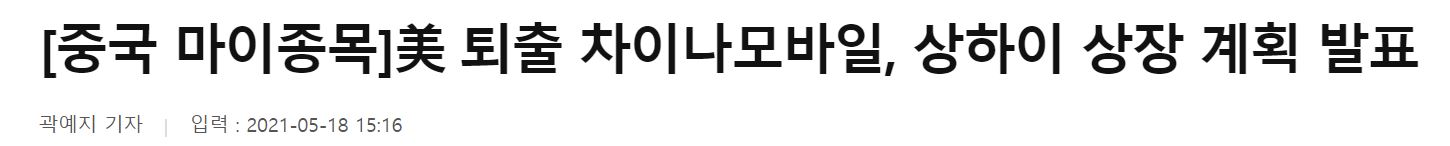차이나 모바일은 1월 미국 트럼프 행정부가 미국에서 거래 정지를 선포한 이후로, 중국 본토 증시 추가 상장을