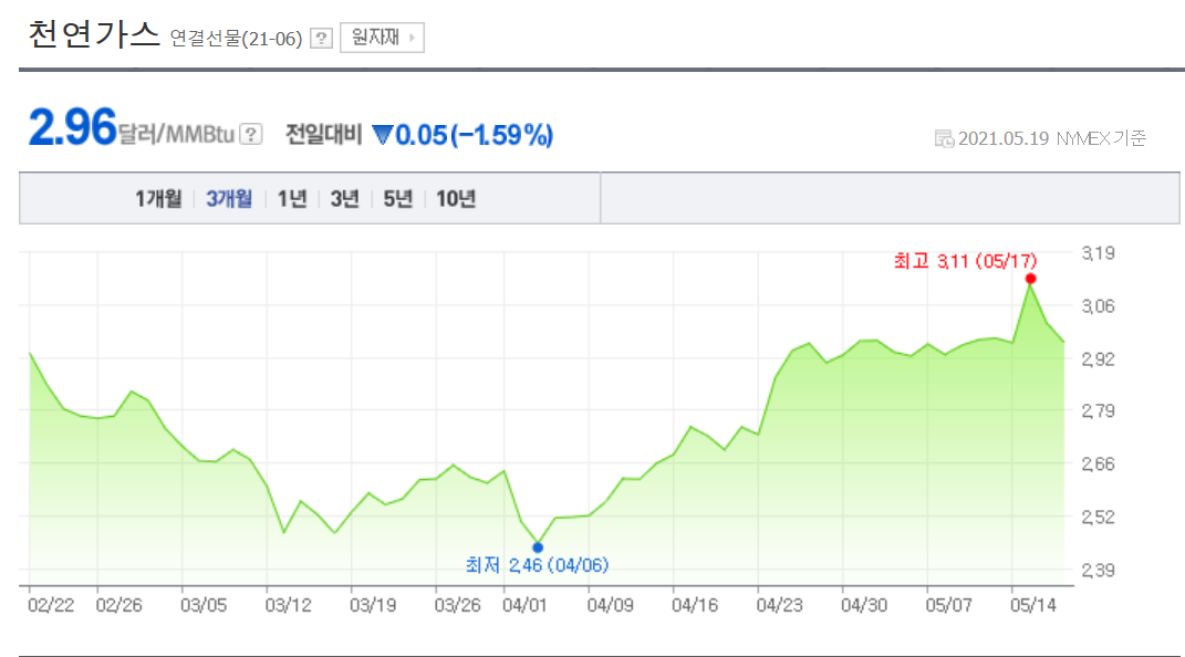 저는 올해에는 천연가스 가격이 인플레이션등의 영향으로 3.5$까지 올락라 수 있을 거라 예상하구요.