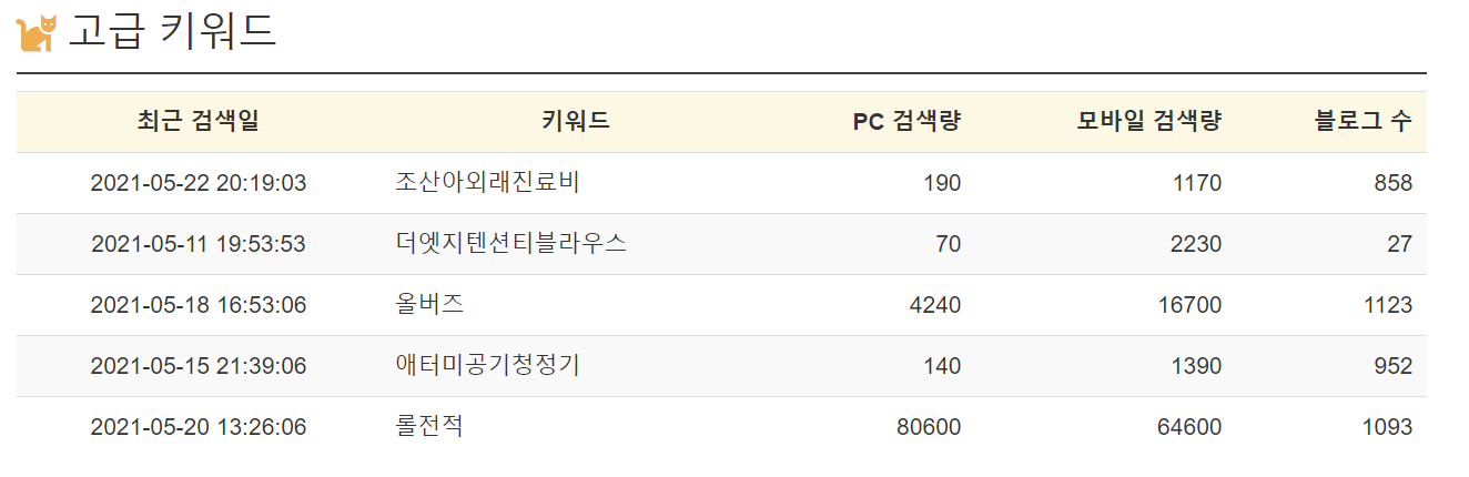 이런 식으로 키워드가 뽑아지네요. 저는 아직은 잡블로그를 운영하지 않지만, 만약 잡블로그를 운영하여 콘텐츠를 만들 때는 참고할 만 할 것 같습니다.