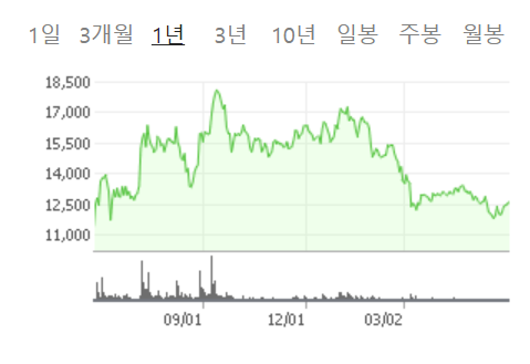 성장이 예상치에 부합하지 못했기 때문인지 주가는 12,000원대에 머물러 있네요.