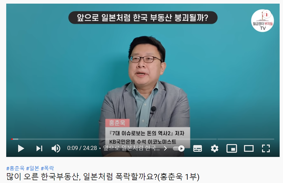 홍춘욱 이코노미스트가 월급쟁이부자들TV에 나오셔서 부동산 관련 자신의 의견을 말씀하셨네요.