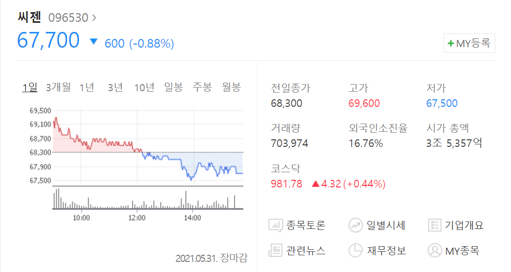 | 씨제이 이엔엠 주가, 글로벌 기업으로의 도전 K-콘텐츠 역량 업그레이드 한다 5조원 투자 비전 발표! (티빙 고속 성장) (0) | 2021.05.31 |