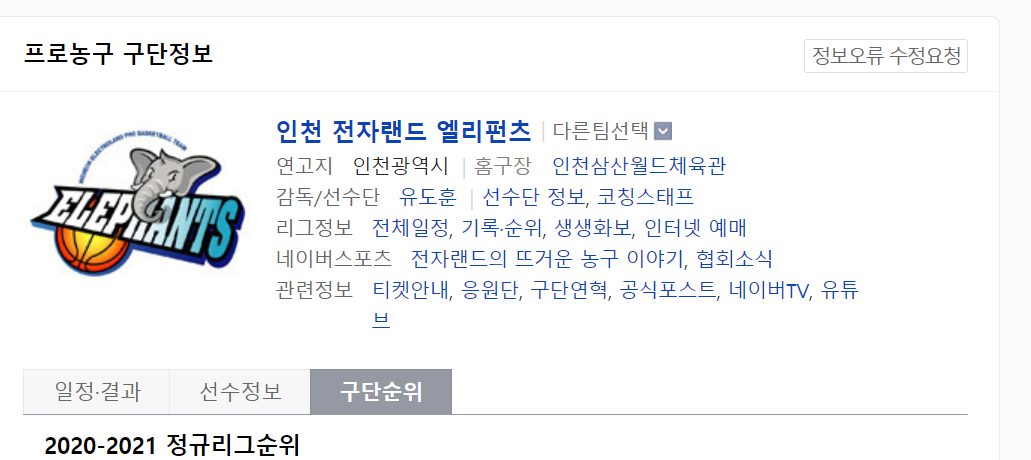 농구는 잘 보지 않아서 저는 전자랜드 농구단을 잘 모르는데요.