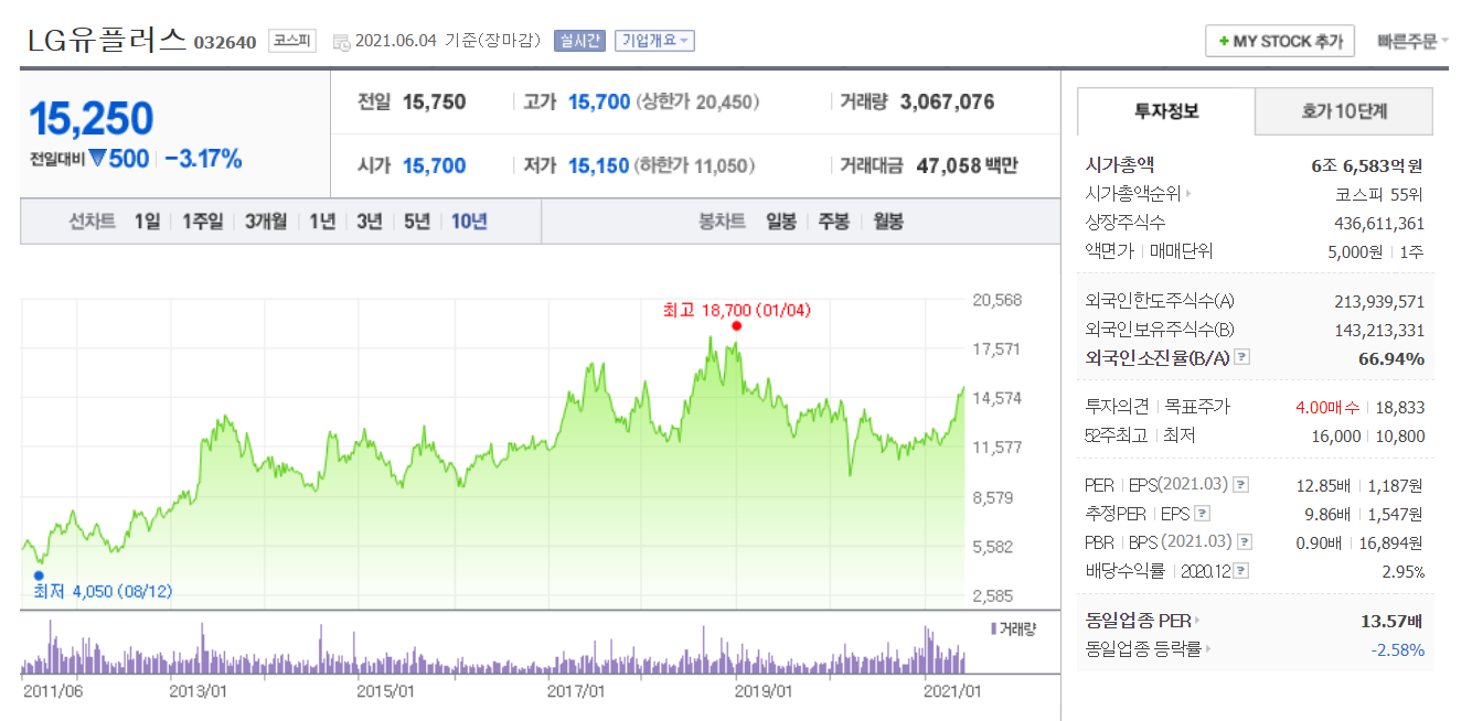 | LG헬로비전 주가, 가파른 상승 주가는 같은 업종 대비 저평가, LG유플러스와의 시너지는 기대된다! (구 CJ헬로비전) (0) | 2021.06.04 |