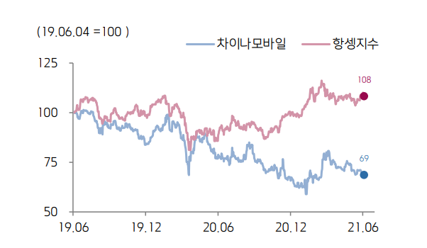 항셍지수 대비 차이나모바일의 가격상승지수를 보면, 홍콩지수 대비 차이나모바일의 주가는 부진함을 알 수 있는데요. 역시, 이에 대한 근거나 자료등이 공유되지 않아 정보를 더 알 수가 없었네요...(이거 보물찾기인가.. 정보를 다 공개하지 않으셔서 할말이 없네요...)