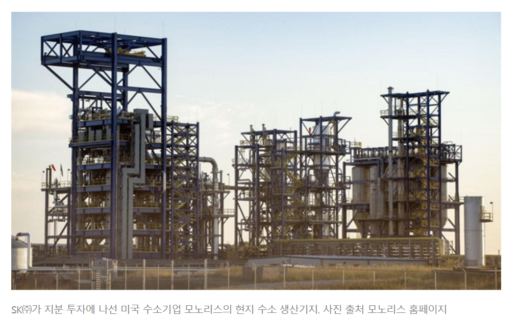 - SK그룹의 지주회사인 SK㈜가 미국 수소기업인 모노리스에 수백억 원대의 지분 투자를 결정하고 이달 계약을 체결할 예정인 것으로 확인됐다.