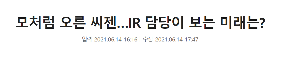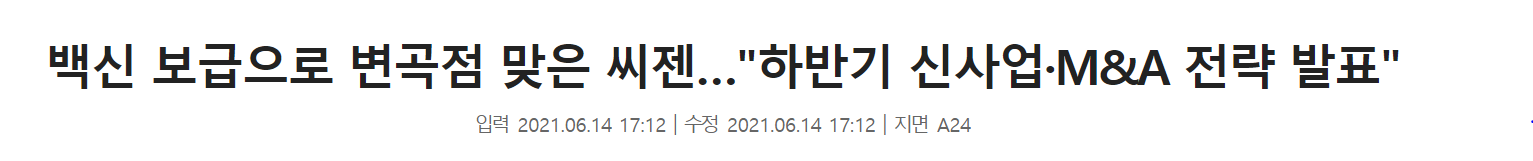 네. 지난 4월에 이미, IR전무님과 인터뷰를 했었네요. 신사업 및 인수합병등에 대한 결과가 하반기에 구체화될 수 있다고 합니다. 저는 공매도로 인해 현재 씨젠의 주가는 본 가치보다 많이 눌려있다고 생각되며, 이 M&A소식으로 주가가 다시 회복할 수 있을 것 같습니다.