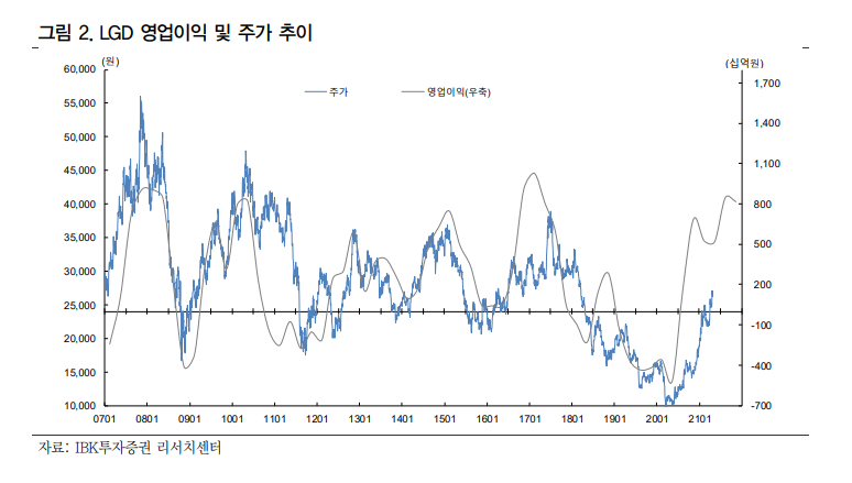 2021년의 디스플레이가격으로 좋은 실적을 거두고 그 이후에는 하락세를 보일 것으로 예상합니다.