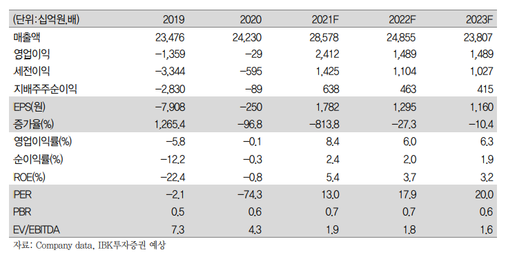 2021년에 반짝 영업이익이 2조 4천억원대로 증가했다가, 2022년 2023년에는 다시 하락하는 것으로 보이고 있네요.