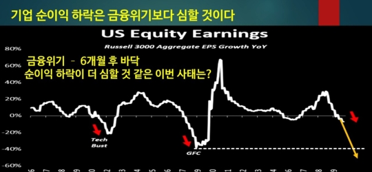 1번, 이제 곧 기업 이익에 대한 발표가 하나둘씩 나올 것인데 금융위기때보다 순이익 하락률이 클 것이라는 예상이 보인다.