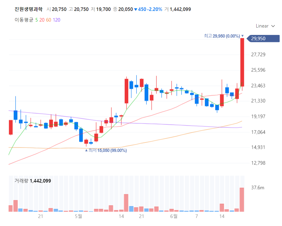 백신이 겁나 필요하니, 원료가 필요하고 원료 공장은 부족. 진원생명과학은 미리부터 원료 공장을 키우고 있었다..라는 것. 거기다가 + 국책사업 재료에 주가가 폭발했군요.