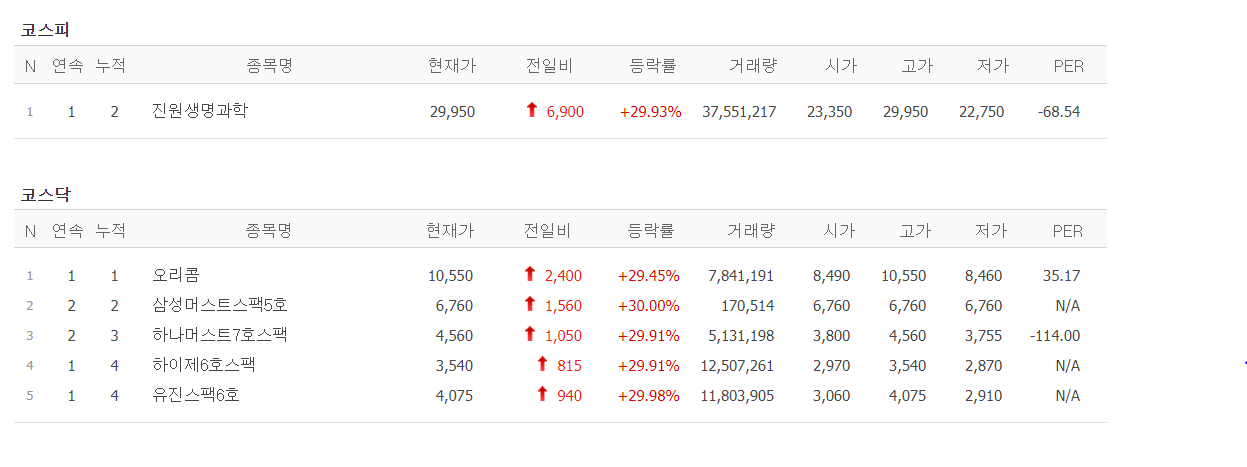 왜, 진원생명과학과 오리콤이 이날 상한가를 갔을까?