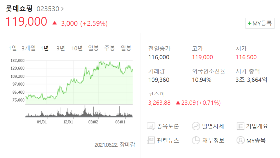 전체적으로 IBK투자증권에 있는 내용을 보면, 이미 시장에 많이 반영되어 있는 코로나 회복으로 인한 수익성 회복이 주요 내용이네요. 이 것만으로는 이미 지금까지의 상승에 모두 반영되어 있다는 생각이드는데요. 딱히, 롯데쇼핑이 제 눈에 들어오지는 않는 것 같습니다. 저는 GS리테일이 더 매력적인 것 같아 GS리테일을 약간씩 매수해보려고 합니다.