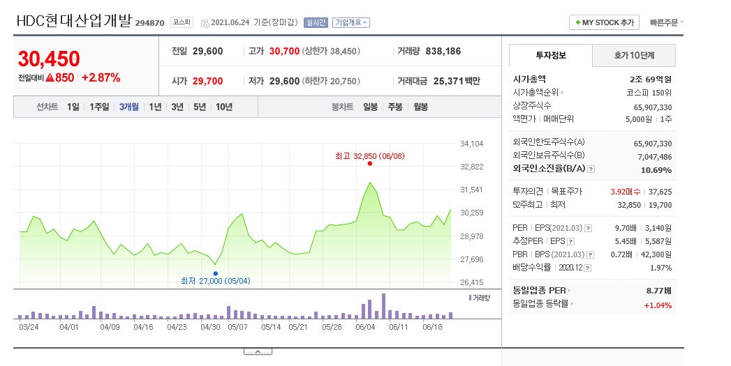 HDC현대산업개발도 최근 많이 올랐는데요. 위의 두 종목은 하나금융투자의 리포트 때문에 또 오늘 주가가 2%대씩 상승을 보인 것 같습니다.