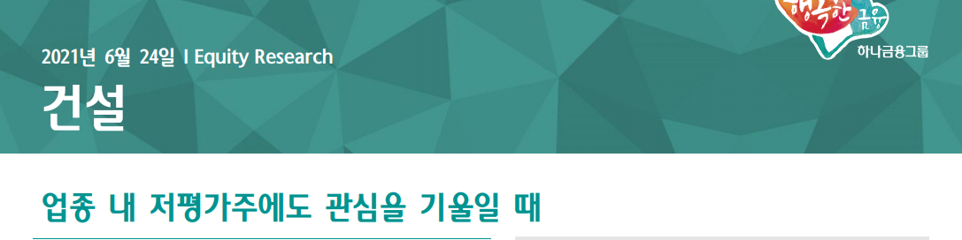 하나금융투자에서 건설 섹터 관련해서 짧은 리포트가 나와서 이를 리뷰해보도록 하겠습니다. 하반기, 건설산업 전망을 어떻게 보고있을지. 이 리포트는 삼프로tv 염승환 부장님도 언급했었던 내용인데요.