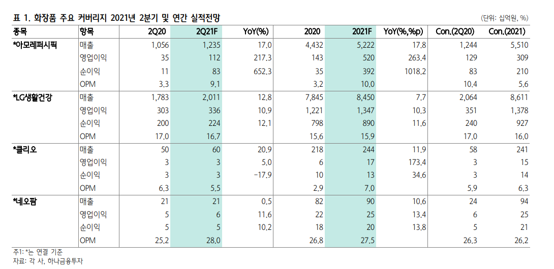 2. 화장품 업체들, 2분기 기대 실적에 못 미칠 것이다.