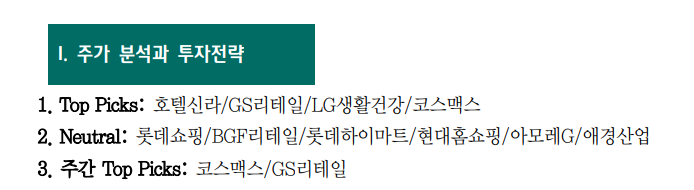 유통/화장품 업종에 대해서는 철저히 실적 위주 보수적 전략이 바람직.