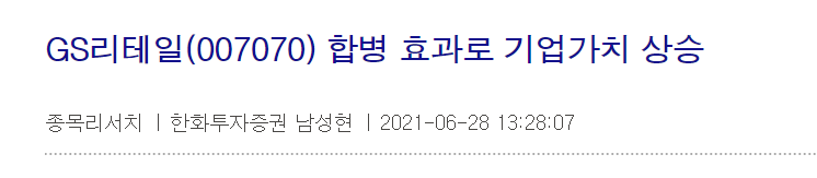(한화투자증권에서는 GS리테일과 GS홈쇼핑의 합병에 대해서 매우 긍정적으로 보고 있네요.)