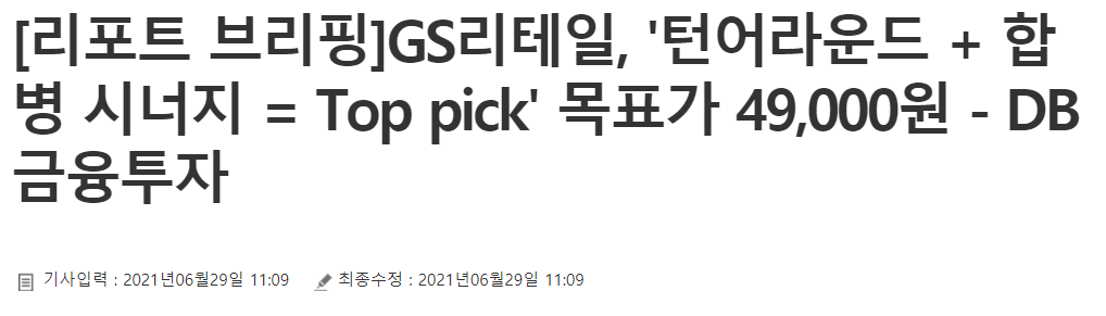 | 지에스리테일주가 60,000원 간다! GS리테일 합병 기대되는 시너지 효과 (GS홈쇼핑 한화투자증권 리포트) (1) | 2021.06.29 |