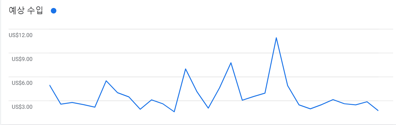 몇가지 이슈성 글로 인해 수익이 크게 늘었던 몇몇 일자들이 보이고 그 이후에는 급속하게 수익이 줄어들었다.