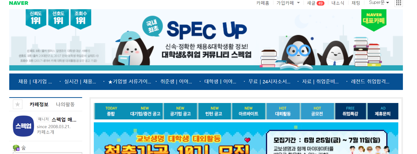 200만 카페회원들이 가입하며 <스펙업>이라는 카페를 성공리에 운영.