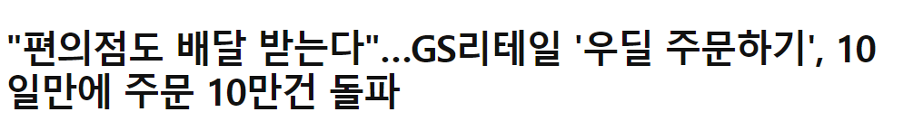 GS리테일은 최근 우딜 주문하기 서비스를 런칭, 우동마트(우리동네마트)에서 주문하면 49분 내에 배송받을 수 있도록 하는 서비스를 시작했다. 바로, 퀵 커머스 산업에 진출 한 것. 퀵 커머스를 가장 처음에 시작한 기업은 배달의 민족이며, 쿠팡도 뒤따라 퀵 커머스를 하고 있다.
