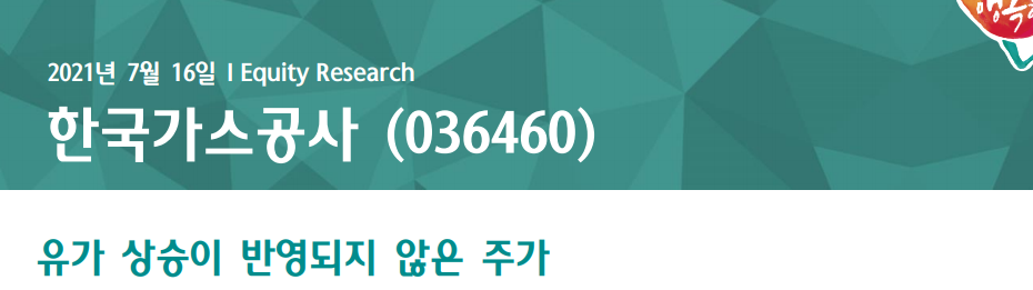 오늘은 오랜만에 한국가스공사 관련 리포트가 나와서 이를 정리 및 요약해보겠습니다.