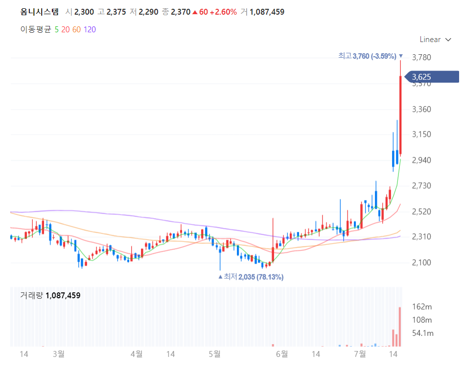 2021.07.16 코스닥 상위 2위였던 옴니시스템을 살펴보려고 한다.