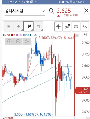 1분 차트를 보면, 일진전기는 막판에 상한가로 올라서면서 유지한 반면 옴니시스템은 오히려 막판에 흘러내렸다. 월요일에도 특별한 이슈가 없다면 다시 흘러내리지 않을까...