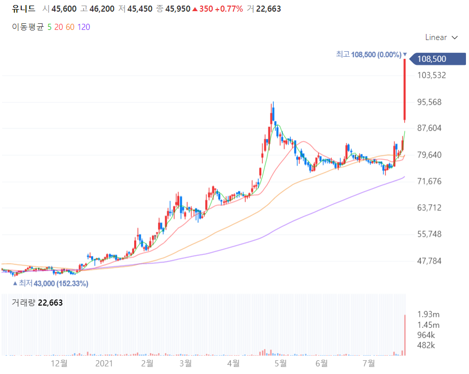 오늘 상한가를 갔던 종목 중에 유니드 라는 기업이 있었다.