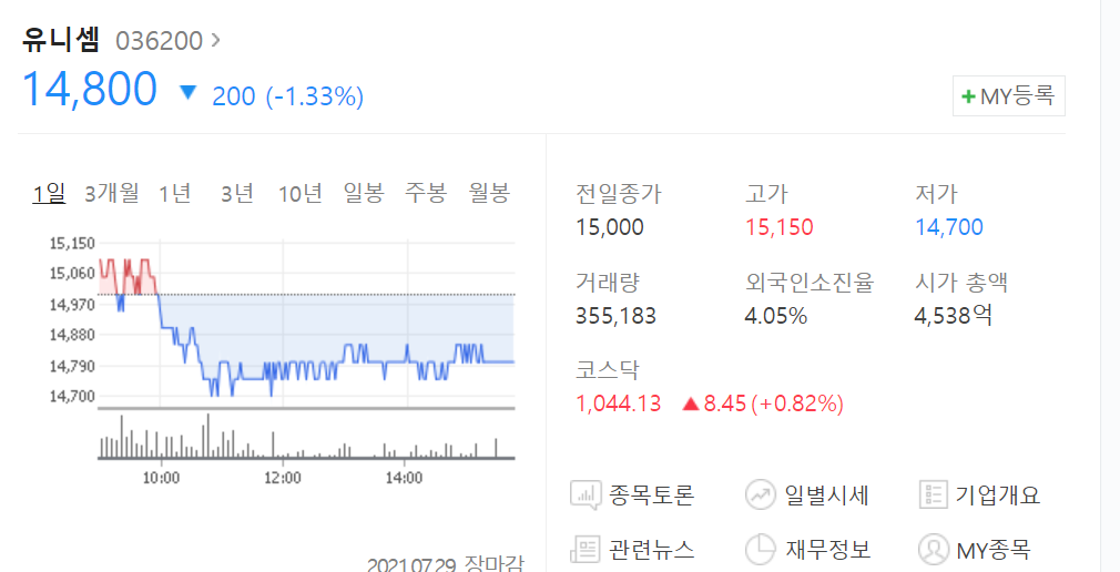 유니셈의 시가총액은 4500억원 수준입니다.