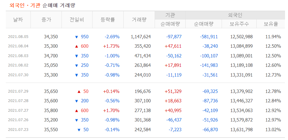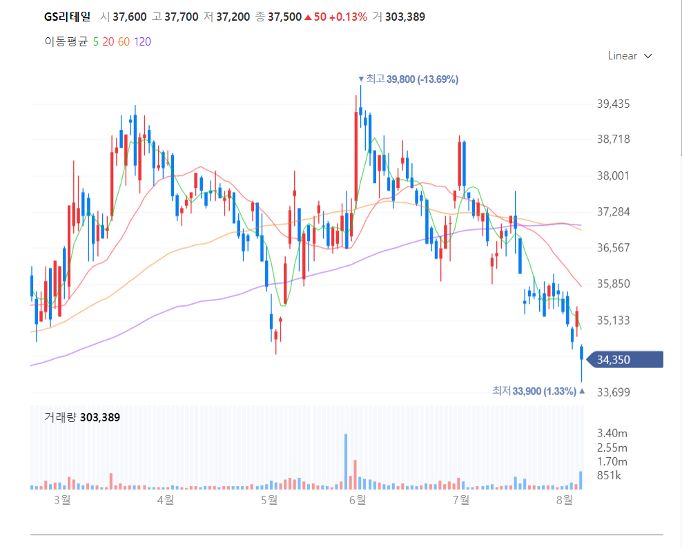 앞으로의 흐름이 중요할 것이다. 여기서 또 하락한다면 전저점인 32,000원까지 봐야할 수도 있겠다...