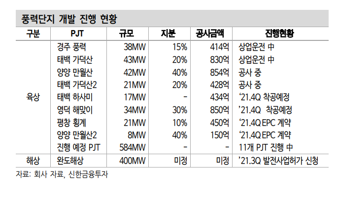 풍력단지 관련에서도 꾸준이 사업이 진행되고 있는 것으로 보이죠.